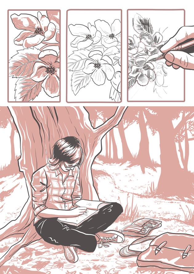 Julie Campbell is a comic artist and illustrator based in Fife. Julie’s work is often heavily inspired by nature and her background in natural history.Her personal comics work draws inspiration both from relationships with the natural world and from the emotional and spiritual journeys we take throughout our lives. Her stories feature growth and reflection, with a focus on glancing backwards, in order to look ahead.She will be bringing her latest comic How to Watch Wildlife, which was successfully funded on Kickstarter at the end of 2024.